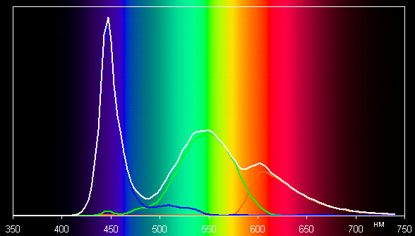 Спектры показывают, что светофильтры матрицы в умеренной степени подмешивают компоненты друг к другу: