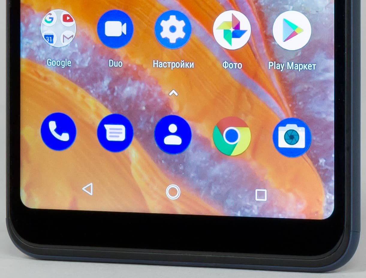 Экран у Nokia 3.1 Plus заметно темнее (яркость по фотографиям 103 против 113 у Nexus 7). Двоение отраженных объектов в экране Nokia 3.1 Plus очень слабое, это свидетельствует о том, что между слоями экрана (конкретнее между внешним стеклом и поверхностью ЖК-матрицы) нет воздушного промежутка (экран типа OGS — One Glass Solution). За счет меньшего числа границ (типа стекло/воздух) с сильно различающимися коэффициентами преломления такие экраны лучше смотрятся в условиях интенсивной внешней засветки, но вот их ремонт в случае потрескавшегося внешнего стекла обходится гораздо дороже, так как менять приходится экран целиком. На внешней поверхности экрана есть специальное олеофобное (жироотталкивающее) покрытие (по эффективности лучше, чем у Nexus 7), поэтому следы от пальцев удаляются значительно легче, а появляются с меньшей скоростью, чем в случае обычного стекла.