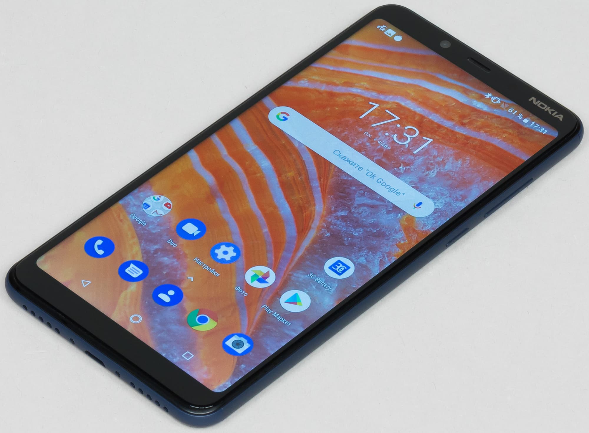 Nokia 3.1 Plus оснащен дисплеем IPS с защитным 2.5D-стеклом. Размеры экрана составляют примерно 68×136 мм, диагональ — 6 дюймов, а разрешение — 1440×720 (с соотношением сторон 18:9), так что плотность точек — всего около 268 ppi.
