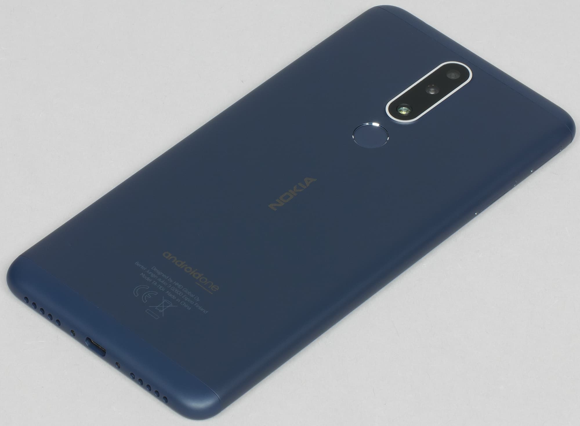 Внизу под экраном нет аппаратных кнопок, и нет даже логотипа легендарной Nokia, как в модели Nokia 5.1 Plus.