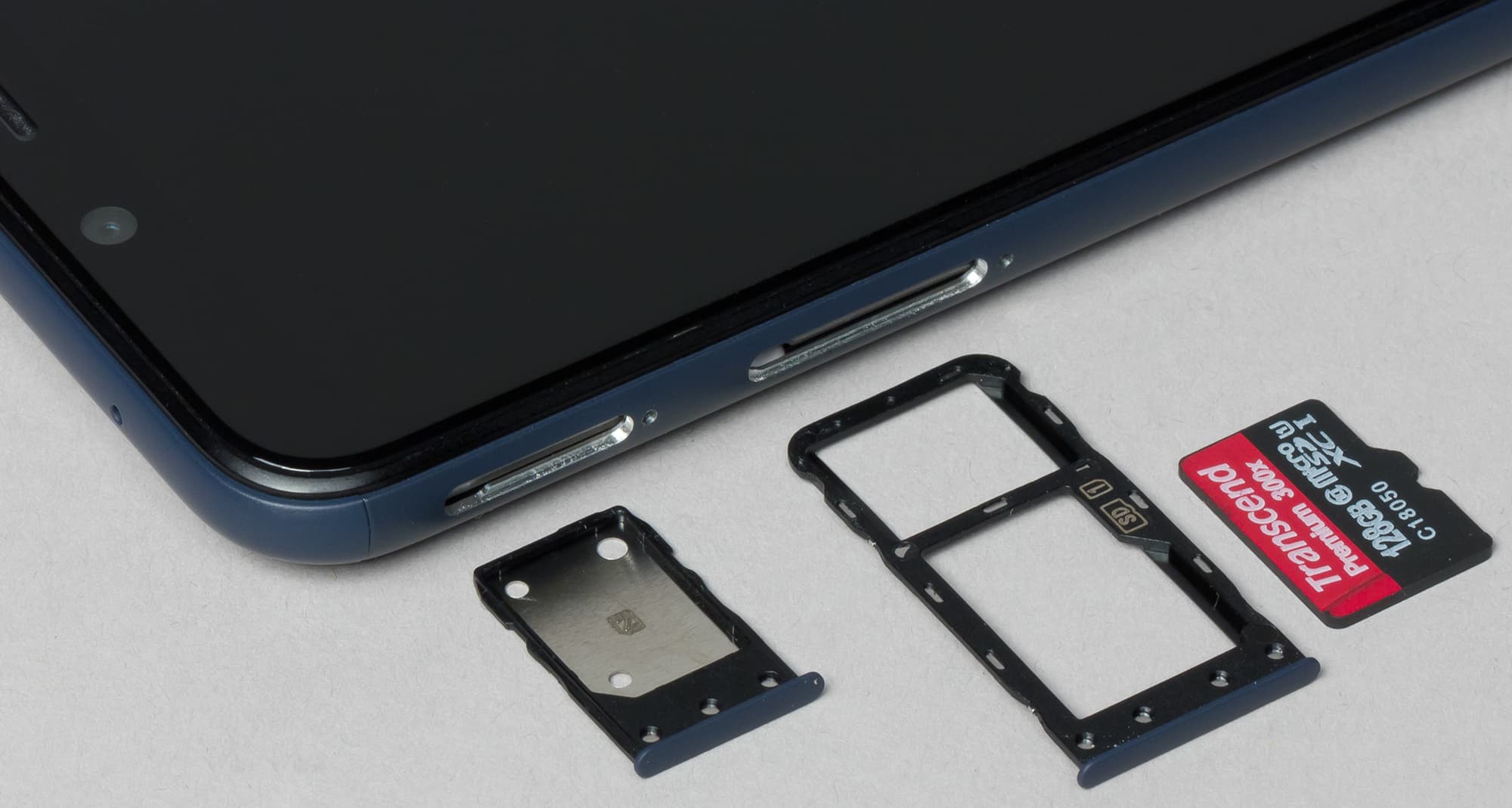 Разъемов для карт неожиданно два: в один можно установить SIM-карту плюс карту памяти microSD, а в другой — только одну SIM-карту. Оба слота поддерживаю формат Nano-SIM. Возможность не жертвовать чем-то одним, конечно, похвальна, но еще более похвальна сама задумка разнести карточки. Таким образом, основная SIM-карта не будет лишний раз выниматься, когда в поездке придется что-то менять или добавлять. Всем бы так. Поддерживается горячая замена карточек.