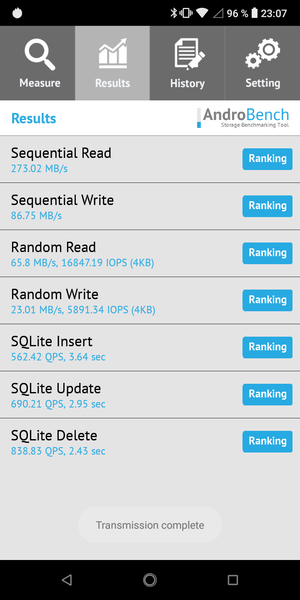 Результаты теста AndroBench на скорость работы с памятью: