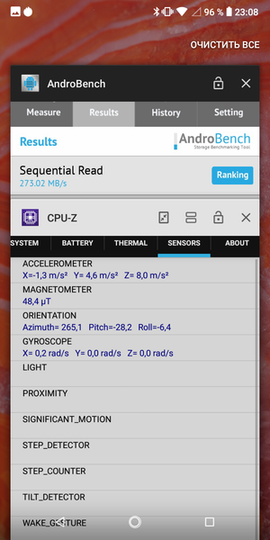 - Датчики приближения и освещения, магнитометр, гироскоп, акселерометр