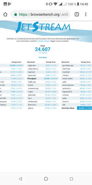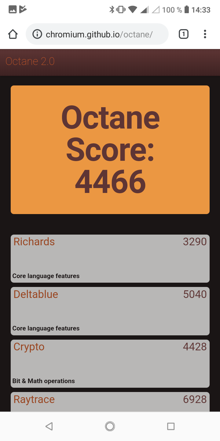 Что касается бенчмарков для оценки скорости движка javascript, то стоит всегда делать скидку на то, что в них результаты существенно зависят от браузера, в котором запускаются, так что сравнение может быть истинно корректным только на одинаковых ОС и браузерах, а такая возможность имеется при тестировании не всегда. В случае с ОС Android мы всегда стараемся использовать Google Chrome.