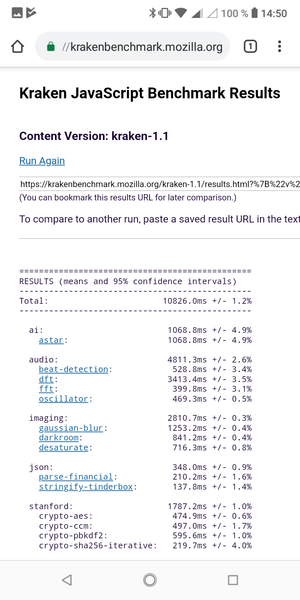 | Mozilla Kraken (мс, меньше — лучше) | 10826 | 4582 | 4561 | 5220 | 4062 |