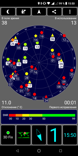 Навигационный модуль работает с GPS (с A-GPS), с отечественной Глонасс, а также с Galileo и китайской Beidou. Первые спутники при холодном старте обнаруживаются быстро, но точность позиционирования средняя. Магнитный компас, необходимый для работы навигационных программ, в аппарате имеется.