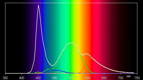 Спектры показывают, что светофильтры матрицы в умеренной степени подмешивают компоненты друг к другу: