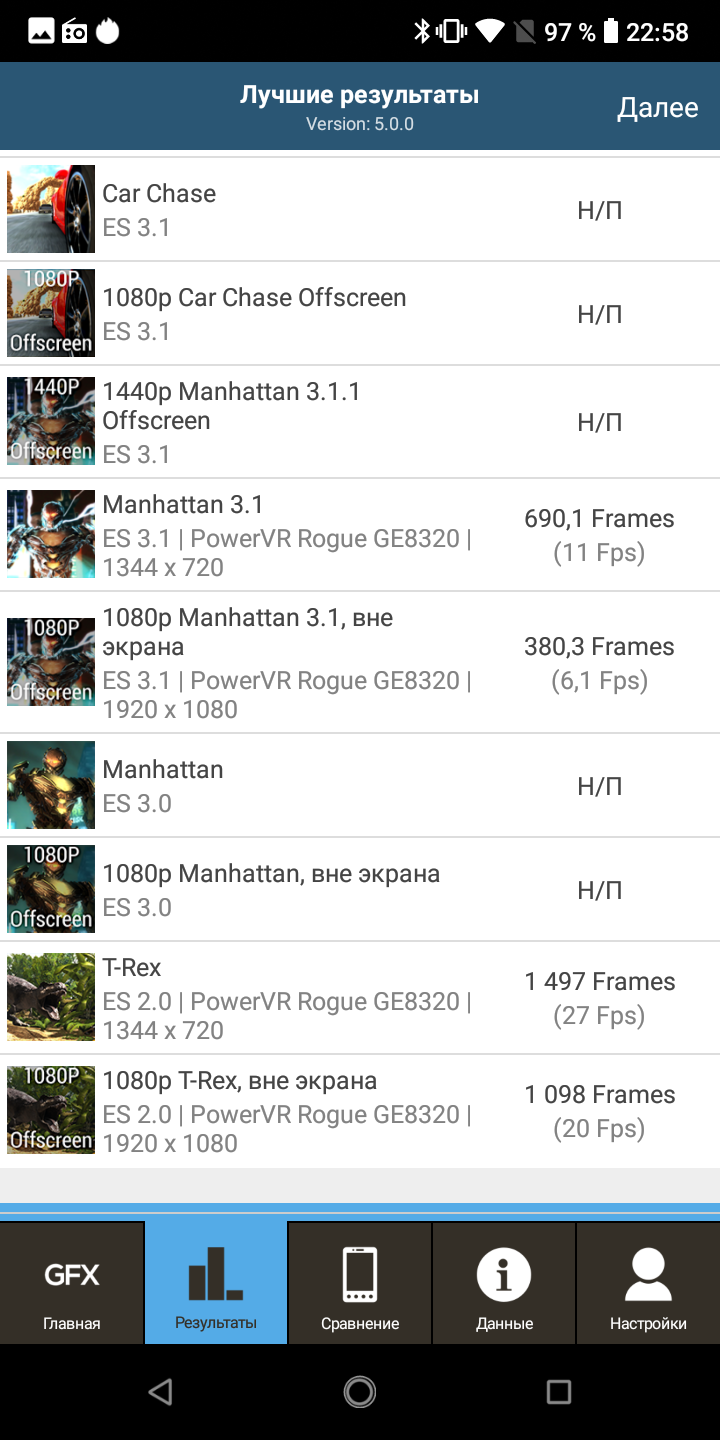 | GFXBenchmark Manhattan ES 3.1 (Onscreen, fps) | 11 | 20 | 10 | 9 | 13 |