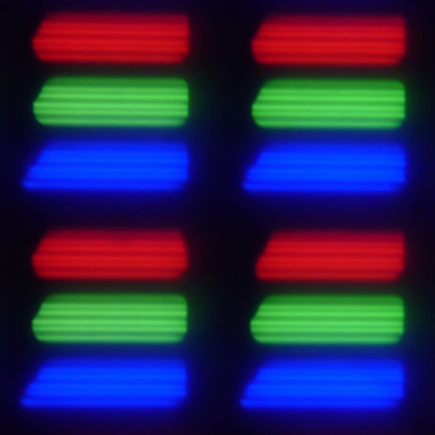 В данном смартфоне используется матрица типа IPS. Микрофотографии демонстрируют типичную для IPS структуру субпикселей: