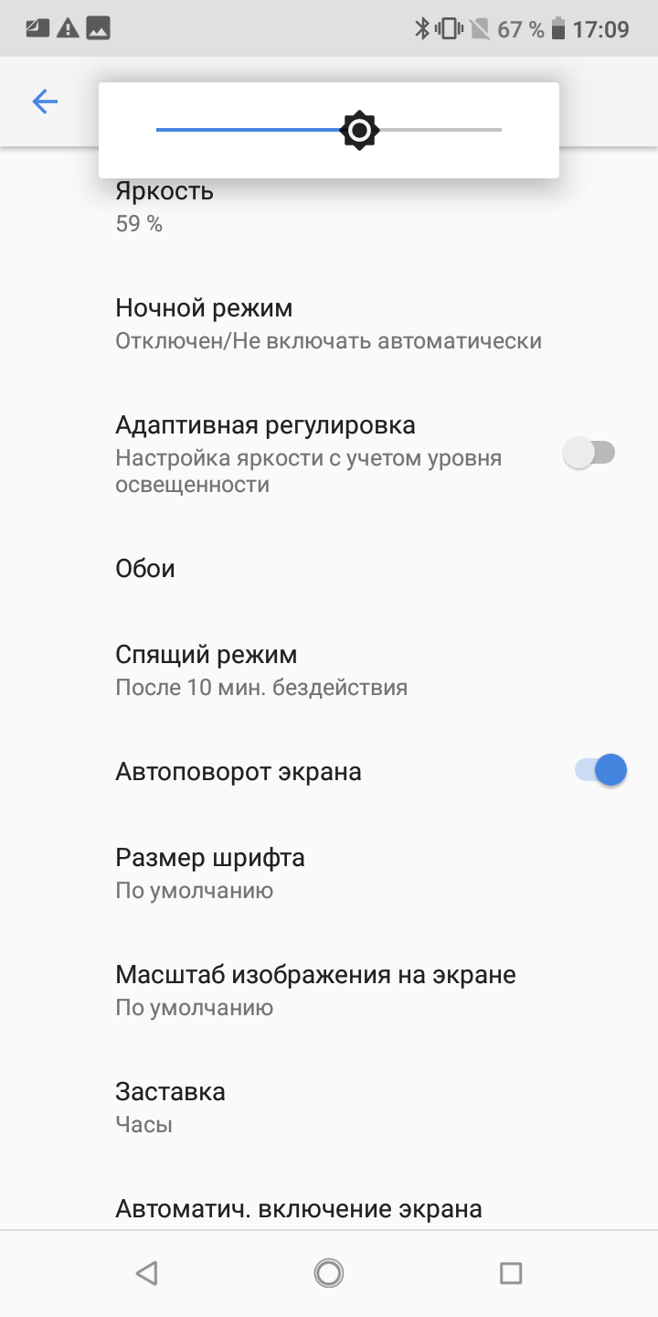 При ручном управлении яркостью и при выводе белого поля во весь экран максимальное значение яркости составило 460 кд/м², минимальное — 2,5 кд/м². Максимальная яркость высокая, поэтому, учитывая отличные антибликовые свойства, читаемость экрана даже в солнечный день вне помещения может быть на приемлемом уровне. Пониженный уровень яркости без проблем позволяет использовать устройство даже в полной темноте. В наличии автоматическая регулировка яркости по датчику освещенности (он находится справа от прорези фронтального громкоговорителя). В автоматическом режиме при изменении внешних условий освещенности яркость экрана как повышается, так и понижается. Работа этой функции зависит от положения ползунка регулировки яркости: им пользователь может попытаться выставить желаемый уровень яркости в текущих условиях. Если оставить все по умолчанию, то в полной темноте функция автояркости уменьшает яркость до 20 кд/м² (нормально), в условиях освещенного искусственным светом офиса (примерно 550 лк) устанавливает на 210 кд/м² (тоже нормально), в очень ярком окружении (соответствует освещению ясным днем вне помещения, но без прямого солнечного света — 20000 лк или немного больше) повышает до 460 кд/м² (до максимума, так и нужно). Результат нас устроил, но представив ситуацию, что кому-то в полной темноте экран покажется слишком ярким, мы в полной темноте чуть уменьшили яркость, получив в итоге для трех условий, указанных выше, следующие значения: 10, 245 и 460 кд/м². Получается, что функция автоподстройки яркости работает адекватно и позволяет пользователю настраивать свою работу под индивидуальные требования. На любом уровне яркости значимая модуляция подсветки отсутствует, поэтому нет и никакого мерцания экрана.