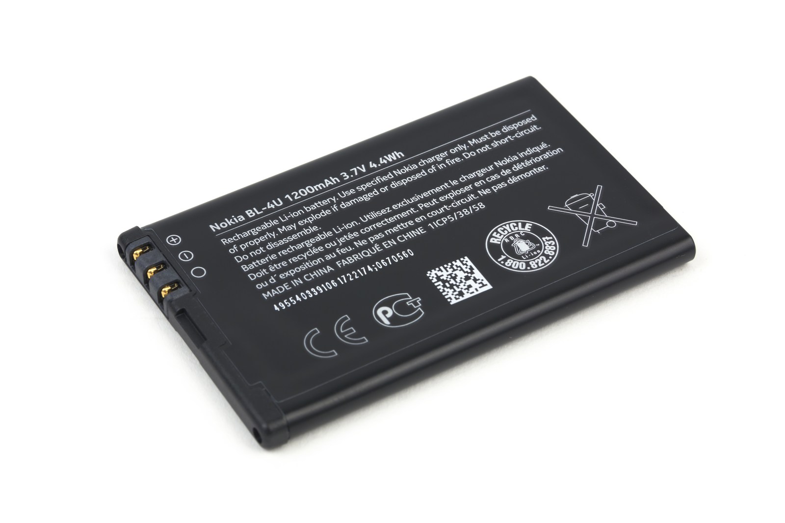 Съемная батарея Nokia 515, BL-4U, имеет емкость 1200 мА·ч.