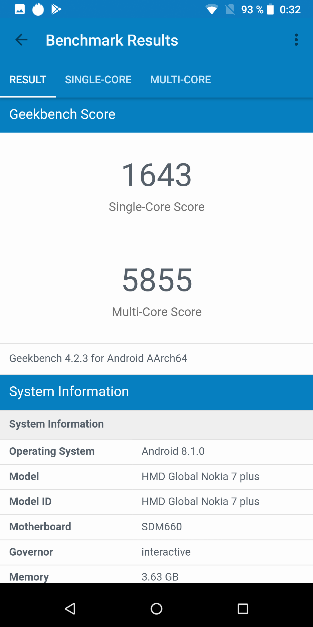 | GeekBench (v4.x) (больше — лучше) | 1643/5855 | 1343/4931 | 1533/5831 | 1321/3190 | 930/3625 |