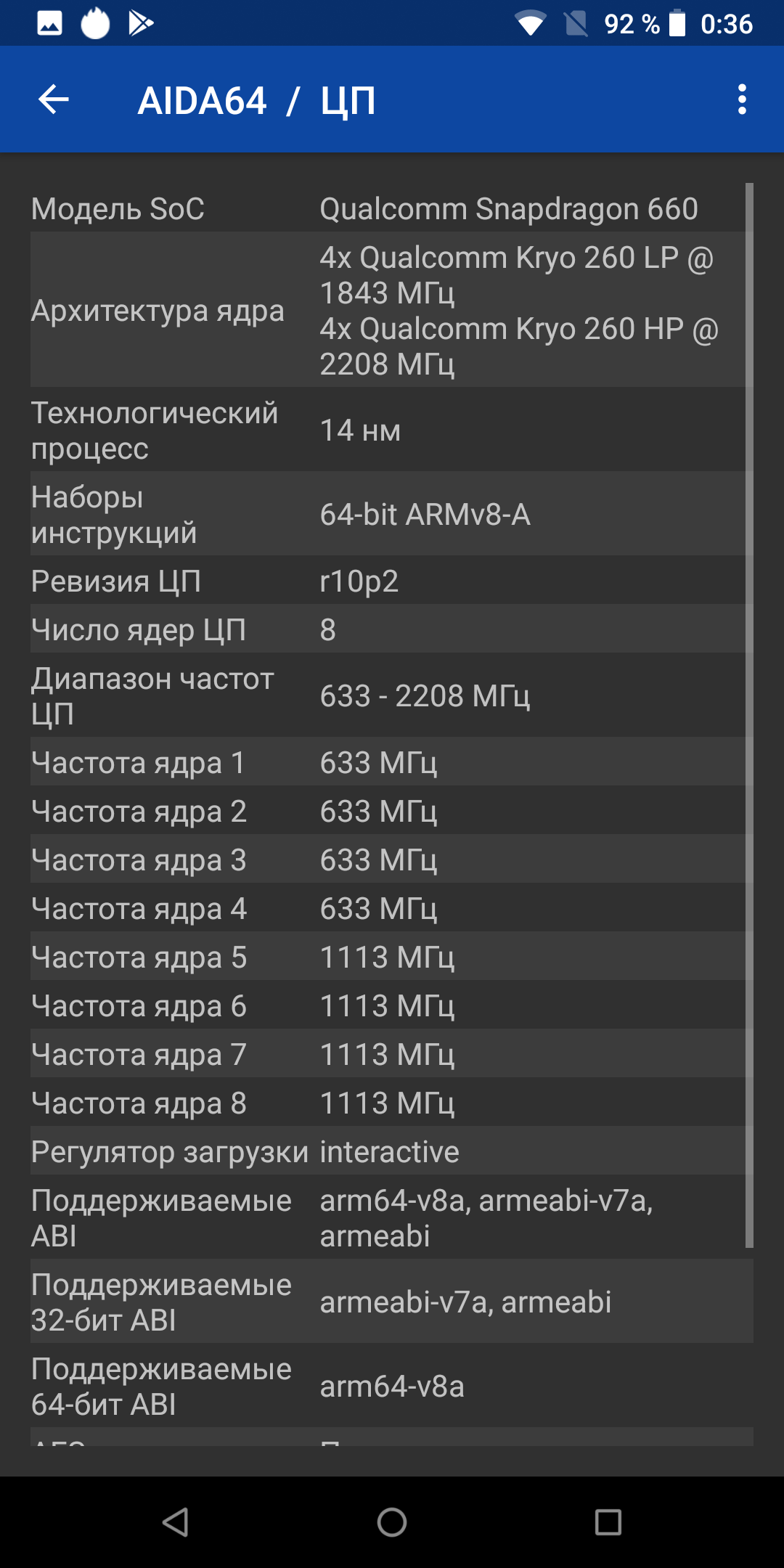 - SoC Qualcomm Snapdragon 660, 8 ядер Kryo 260, 4 до 2,2 ГГц + 4 до 1,8 ГГц