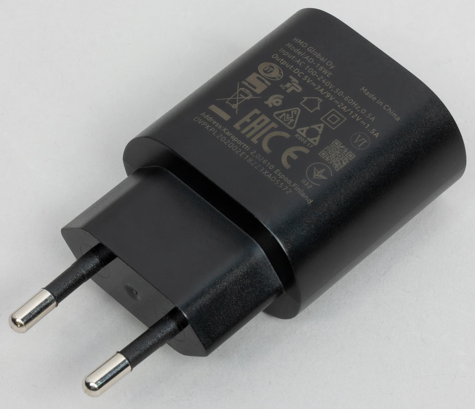 Смартфон поддерживает быструю зарядку, от собственного сетевого адаптера он заряжается в течение 2 часов: в начале процесса ток составляет 2,4 А при напряжении 7 В, к концу эти значения снижаются. Беспроводную зарядку смартфон не поддерживает.