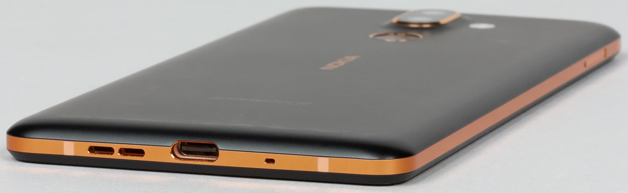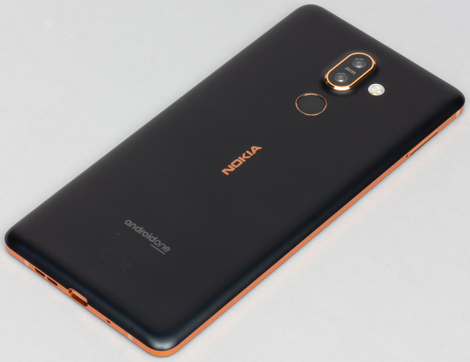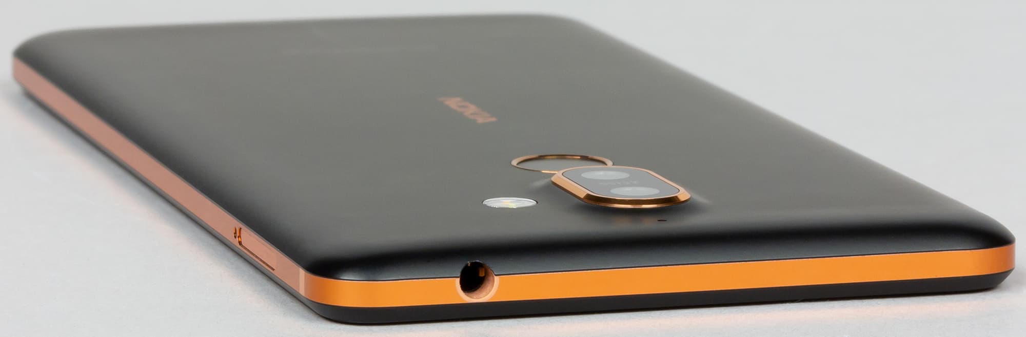 Выпускается Nokia 7 Plus всего в двух цветовых вариантах корпуса: черном и белом. И в том, и в другом случае сочетание основного цвета корпуса с золотистой окантовкой всех элементов, в том числе аккуратного логотипа за тыльной стороне, не вызывающего раздражения, смотрится весьма удачно.