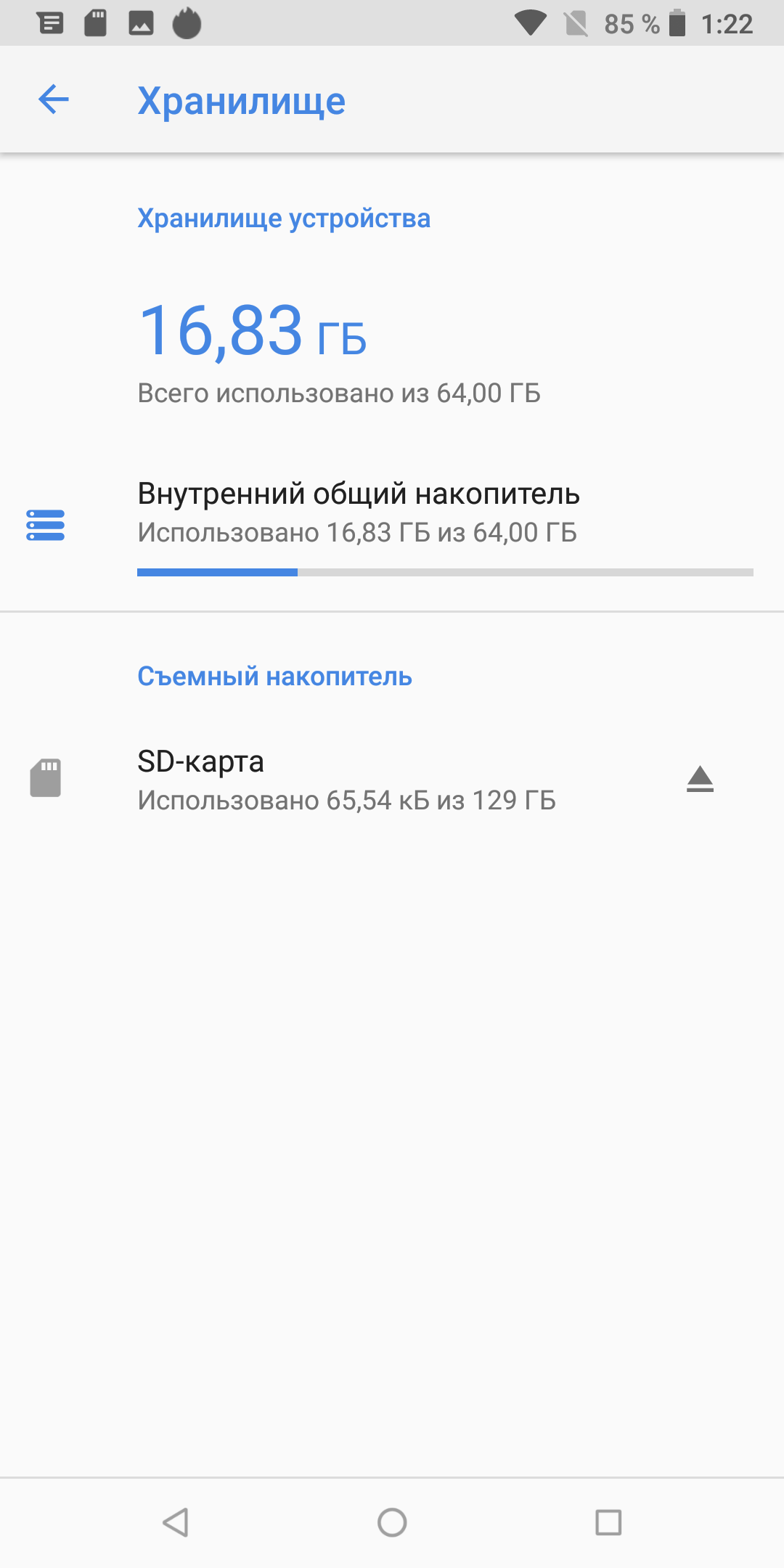 Разъем для карт гибридный, в него можно одновременно установить две Nano-SIM-карты или одну Nano-SIM и одну карту памяти. Поддерживается горячая замена. Проверочная карта объемом 128 ГБ без труда распозналась, однако в качестве внутреннего хранилища отформатировать ее не предлагается. А следовательно, для установки файлов приложений дополнительная память не используется, только для хранения мультимедийных файлов (фото, видео, музыка и т. д.).