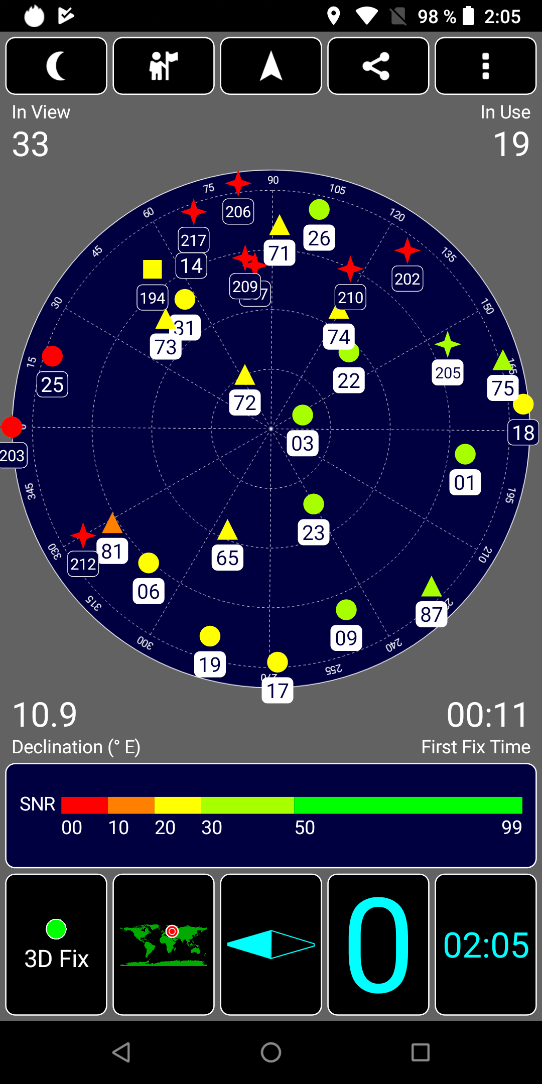 Навигационный модуль работает с GPS (с A-GPS), с отечественной Глонасс и с китайской Beidou. Первые спутники при холодном старте обнаруживаются быстро, в течение первой минуты. Магнитный компас, необходимый для работы навигационных программ, в аппарате имеется.