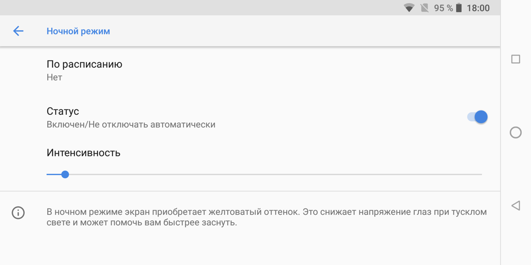 Присутствует модная настройка, позволяющая снизить интенсивность синей компоненты.