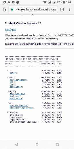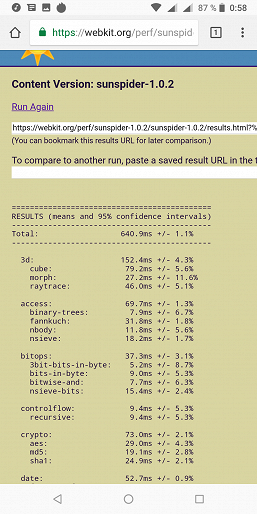 Что касается бенчмарков для оценки скорости движка javascript, то стоит всегда делать скидку на то, что в них результаты существенно зависят от браузера, в котором запускаются, так что сравнение может быть истинно корректным только на одинаковых ОС и браузерах, а такая возможность имеется при тестировании не всегда. В случае с ОС Android мы всегда стараемся использовать Google Chrome.