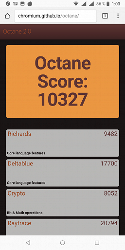 | Google Octane 2 (больше — лучше) | 10327 | 9181 | 4874 | 8450 | 4696 |