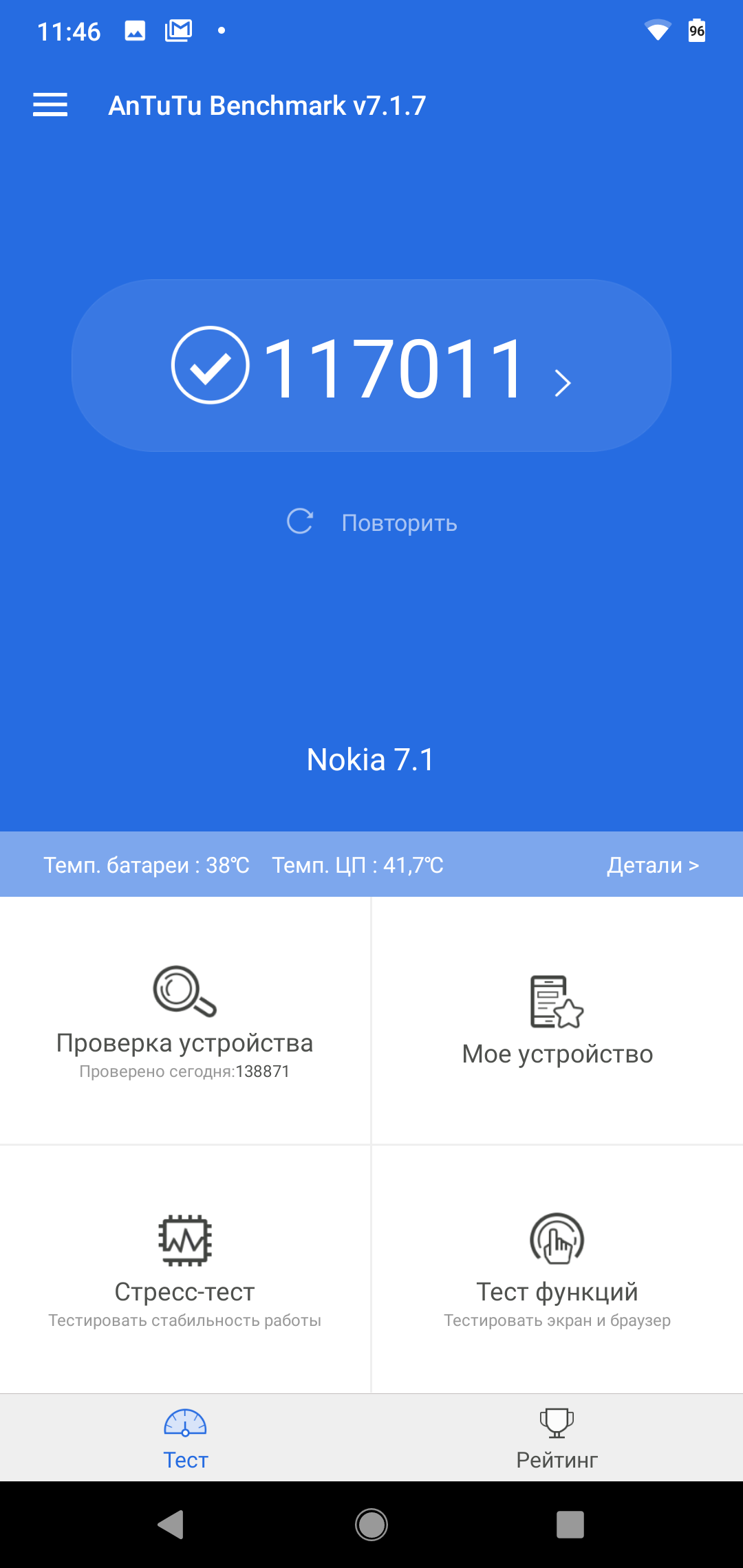 | AnTuTu (v7.x) (больше — лучше) | 117011 | 108965 | 129689 | 122891 | 122309 |
