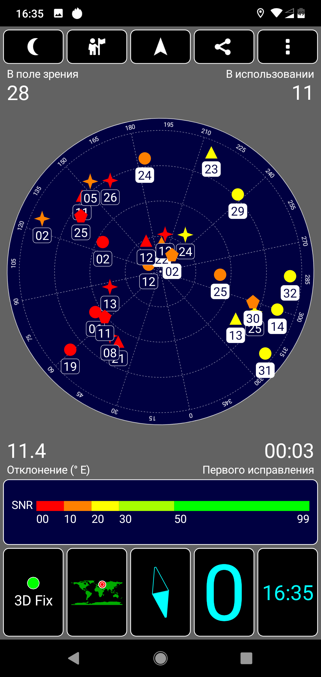 Навигационный модуль работает с GPS (с A-GPS), Глонасс, Galileo и китайской Beidou. Первые спутники при холодном старте обнаруживаются в течение первых десятков секунд, точность позиционирования не вызывает претензий. Магнитный компас, необходимый для работы навигационных программ, в аппарате имеется.