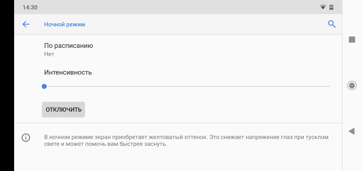 Присутствует модная настройка, позволяющая снизить интенсивность синей компоненты.