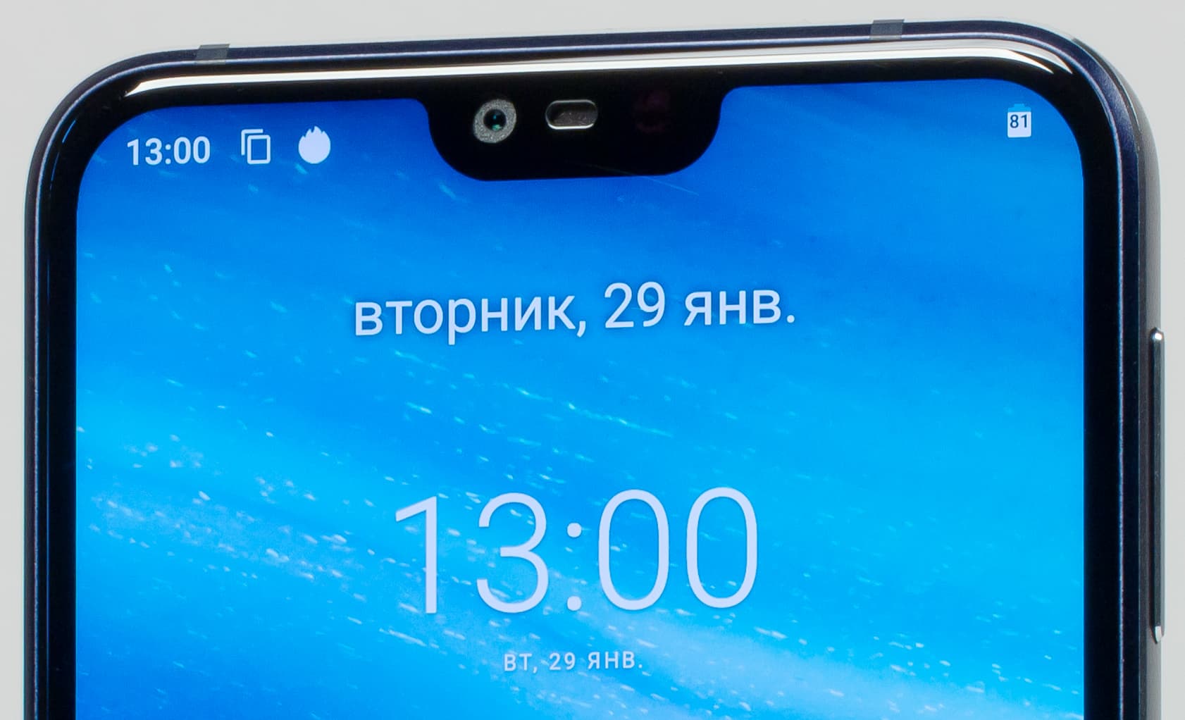 Светодиодный индикатор событий на передней панели не установили, но статус зарядки отображается даже на выключенном экране в режиме Always On Display. Правда, экран здесь не AMOLED, а IPS, так что держать его включенным постоянно — значит, обрекать на быстрый расход энергии. Из этих соображений информация на погашенный экран выводится лишь при прикосновении к экрану. Отображаемая информация стандартна: часы, пропущенные события, заряд и т. д.