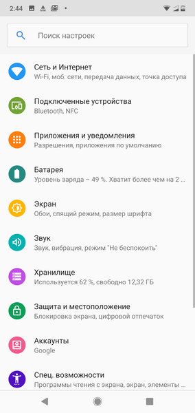 В качестве программной платформы Nokia 7.1 используется ОС Android версии 9 с возможностью обновления по воздуху (ОТА). Смартфоны последнего поколения Nokia в этом плане одинаковы: все они выпускаются по программе Android One на чистой ОС Android и не имеют собственных оболочек. Интерфейс и настройки полностью соответствуют чистому Android, никаких изменений тут не внесено. Среди предустановленных приложений можно найти полный набор Google Apps и полноценно работающий магазин Play Store.