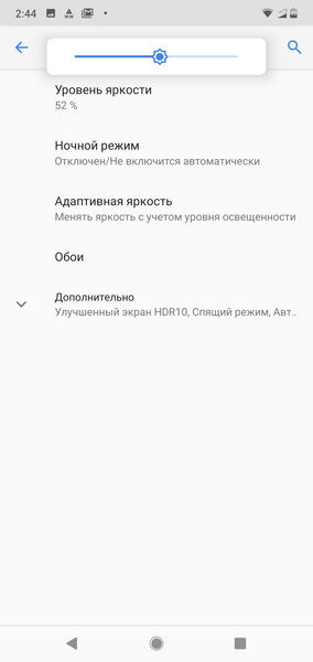 По критерию вывода кадров качество воспроизведения видеофайлов на экране самого смартфона хорошее, так как в большинстве случаев кадры или группы кадров могут (но не обязаны) выводиться с равномерным чередованием интервалов и без пропусков кадров. При воспроизведении видеофайлов с разрешением 1920 на 1080 пикселей (1080p) изображение собственно видеофайла выводится один в один по пикселям, точно по высоте экрана (при ландшафтной ориентации) и в истинном разрешении Full HD. Отображаемый на экране диапазон яркости соответствует стандартному диапазону 16—235: в тенях и в светах отображаются все градации оттенков, что и требуется для корректного воспроизведения типичных видеофайлов. Отметим: в этом смартфоне есть поддержка аппаратного декодирования файлов H.265 с глубиной цвета 10 бит на цвет, при этом вывод на экран, видимо, осуществляется все равно в 8-битном режиме, так как градаций оттенков явно меньше, чем должно быть для 10-битного вывода. Также поддерживается отображение файлов HDR, но количество градаций оттенков при этом снижено.