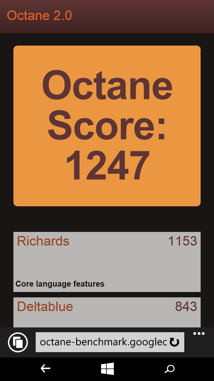 * Смартфон прошел тест в бенчмарке Octane 1.0