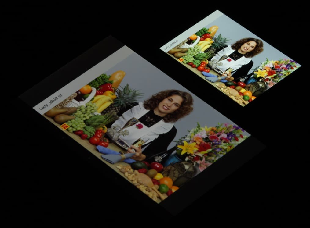 Отметим, что на экранах с широким цветовым охватом без соответствующей коррекции цвета обычных изображений, оптимизированных для устройств sRGB, выглядят неестественно насыщенными. Хорошо, что в профиле дополнительно настройкой Насыщенность цвета можно уменьшить именно охват, а не цветовой контраст. При минимальном значении этой настройки охват становится даже меньше sRGB: