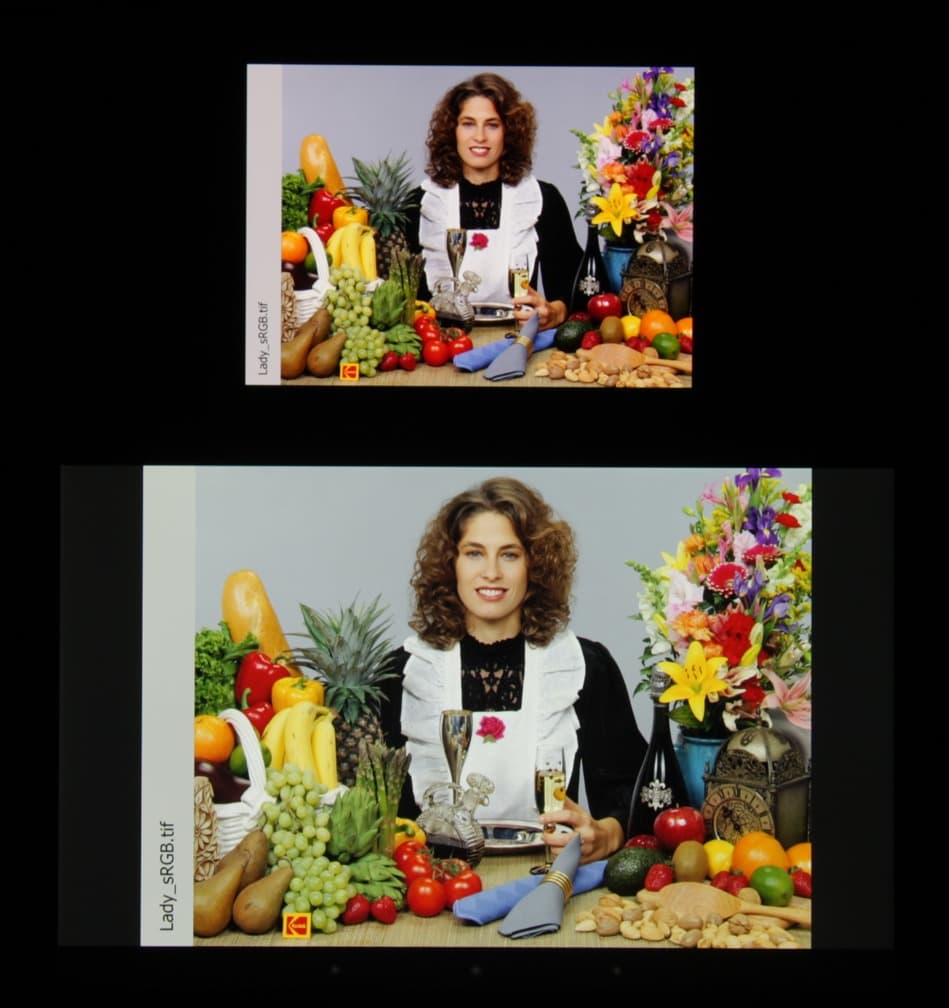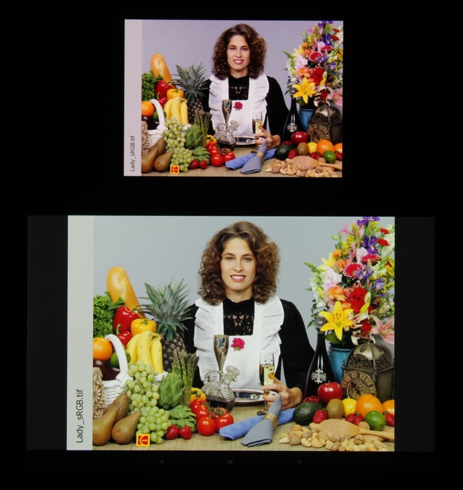 Отметим отличную равномерность яркости и цветового тона белого поля. И тестовая картинка (профиль стандартный):
