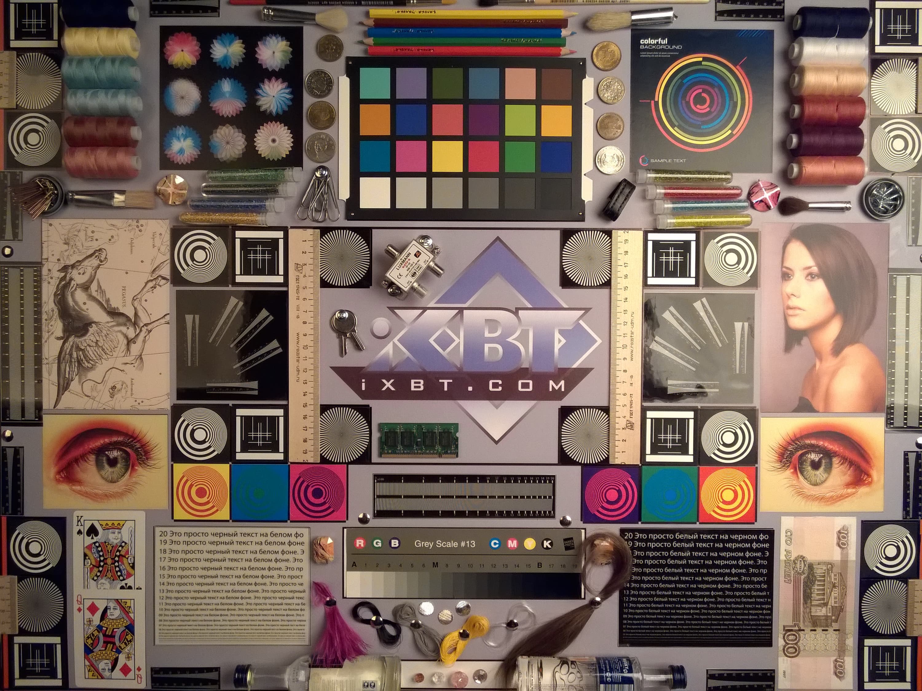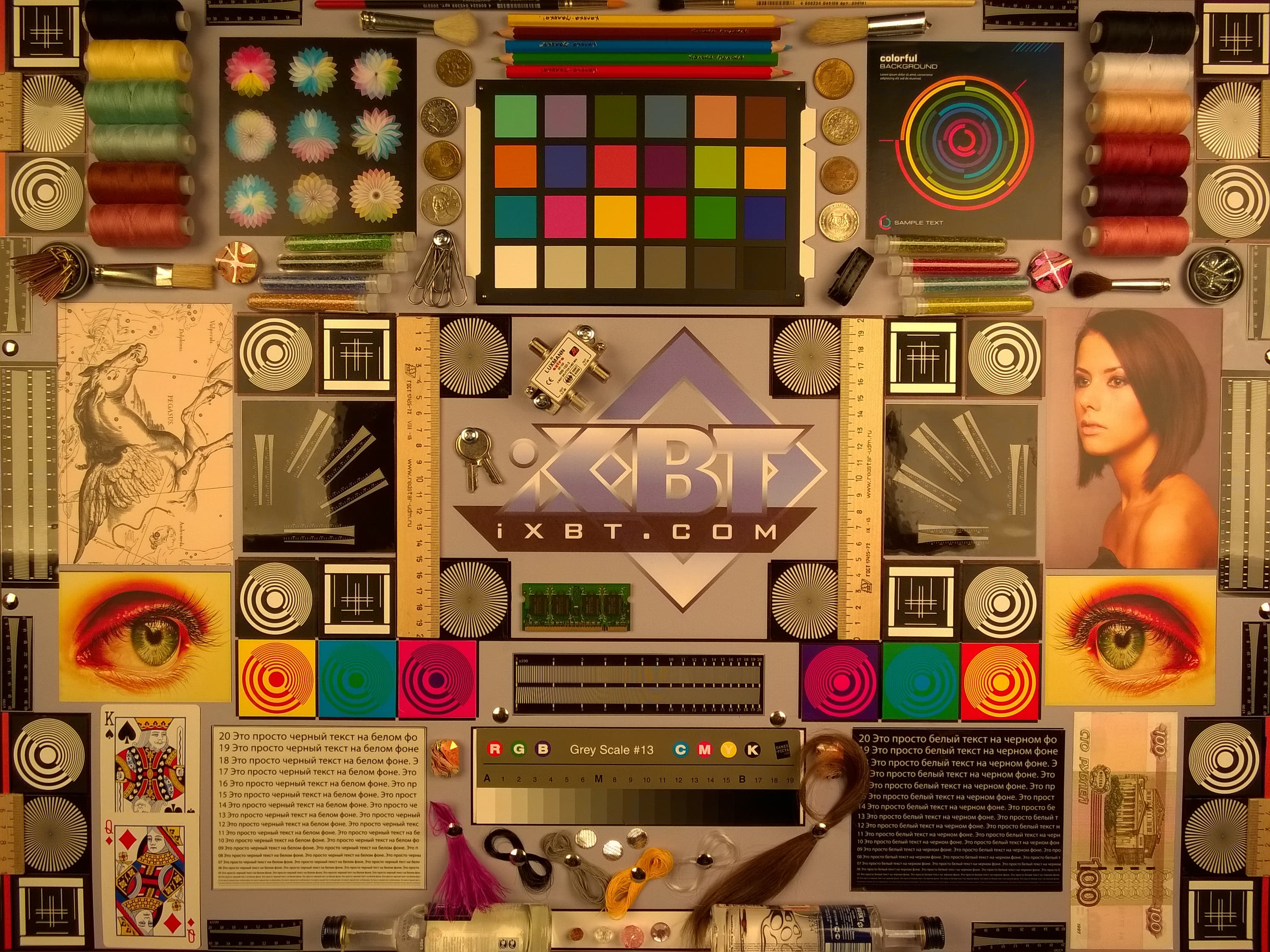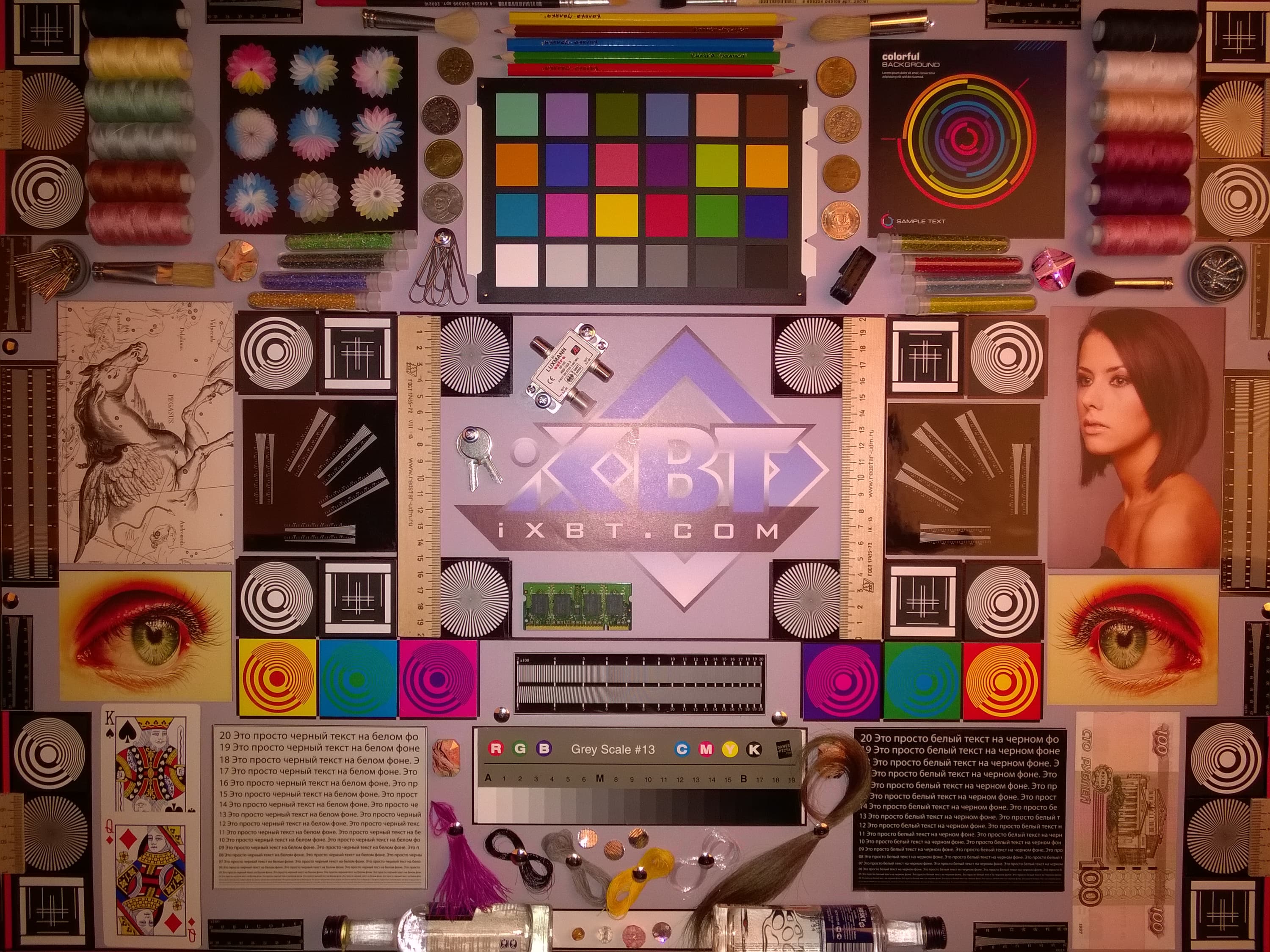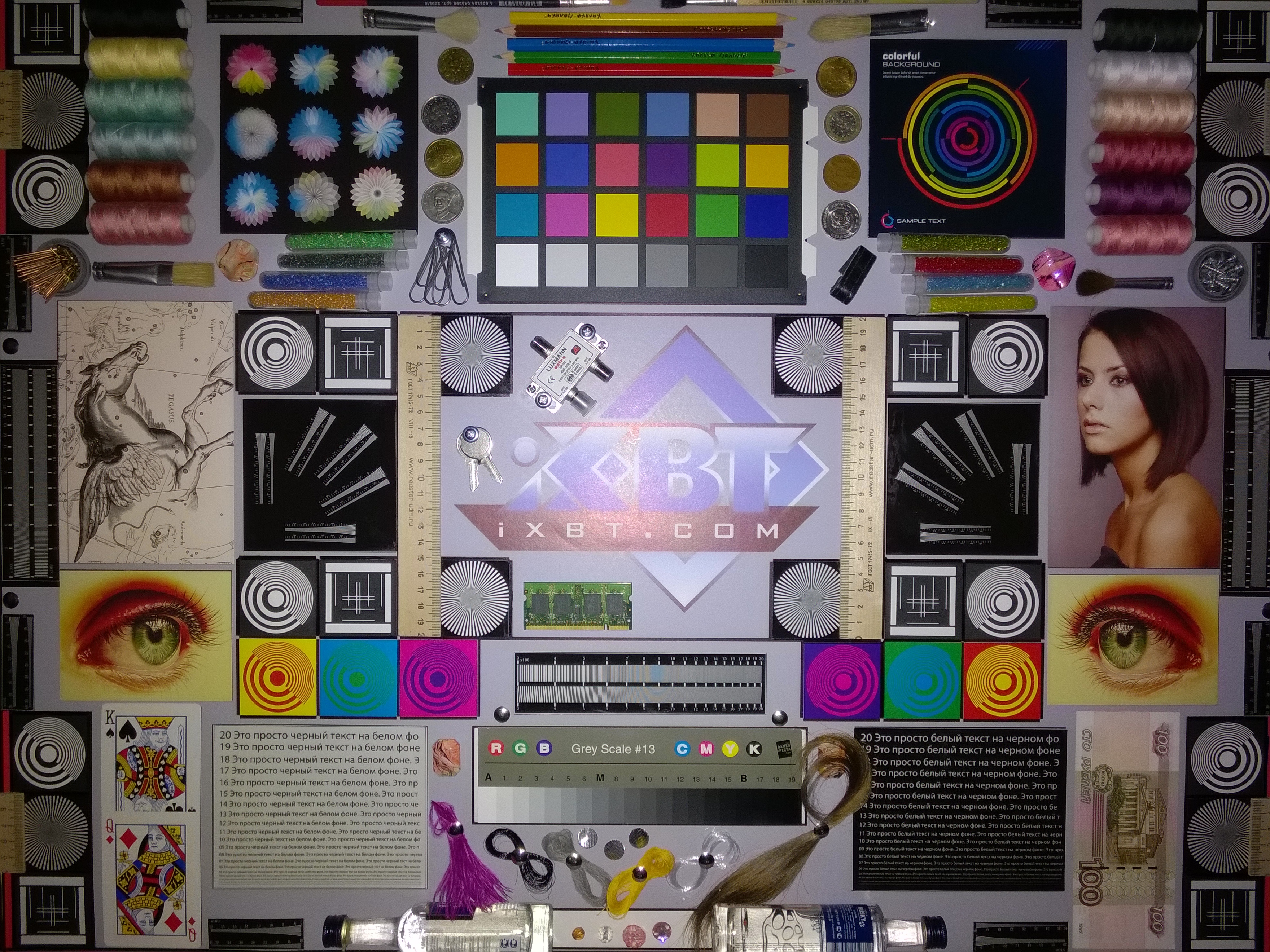 Отметим хорошую равномерность яркости и цветового тона белого поля. И тестовая картинка: