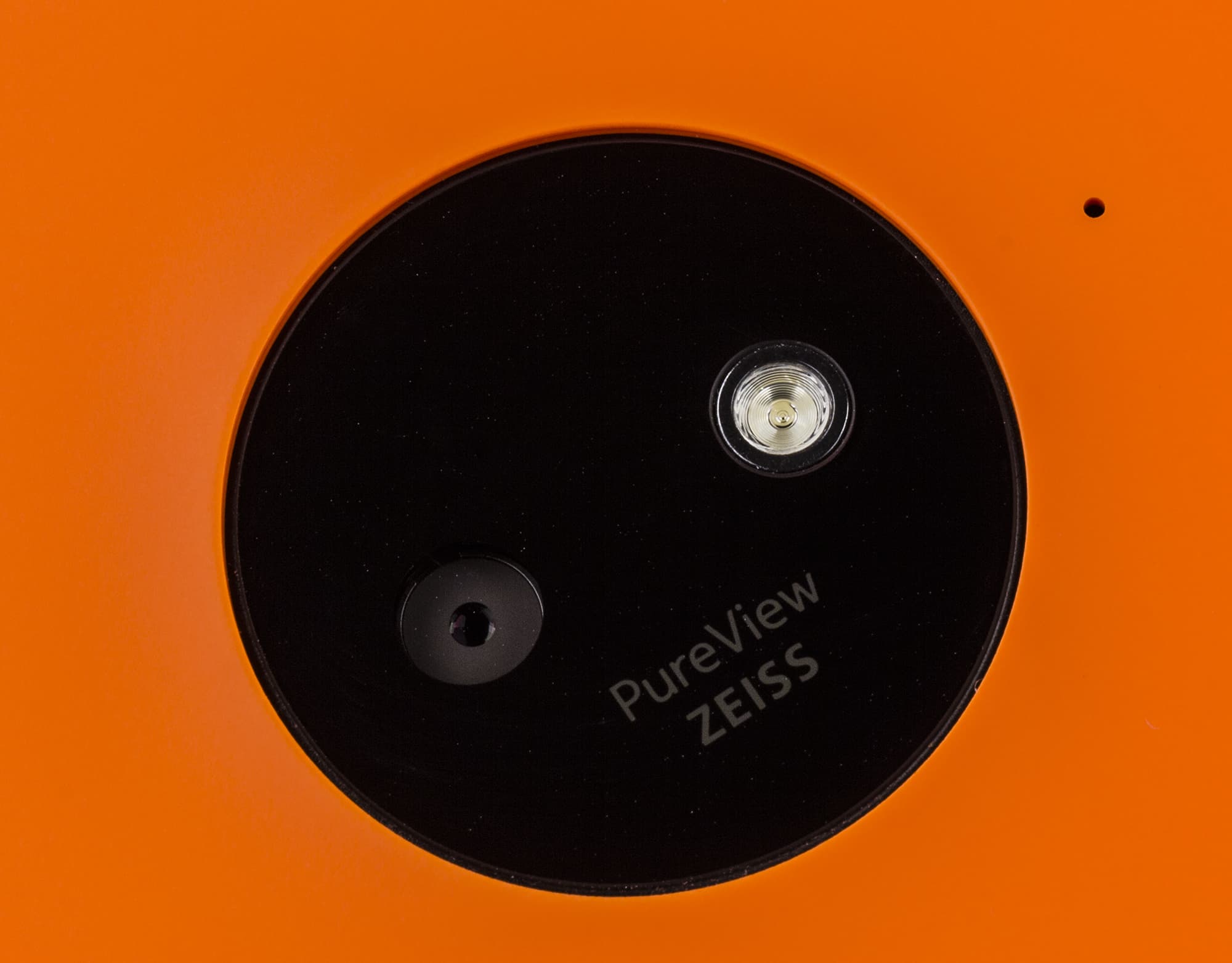 Задняя панель Nokia Lumia 830 представляет собой сменную крышку аккумуляторного отсека в которой предусмотрены отверстия для блока основной камеры, дополнительного микрофона и основного динамика. Большая окружность вокруг объектива камеры и светодиодной вспышки — это элемент декора и не более того, с ним Nokia Lumia 830 может хоть как то выделяться среди своих собратьев. Вся круглая панель закрыта защитным стеклом и чуть утоплена относительно плоскости поверхности задней панели, которая в этом месте имеет ощутимую выпуклость. Все это позволяет не беспокоиться насчет сохранности объектива фотокамеры.