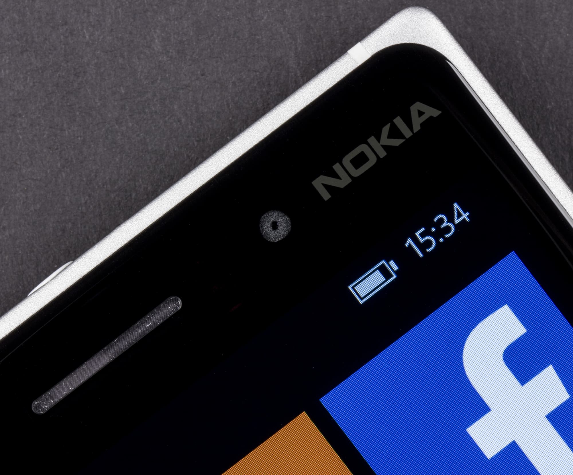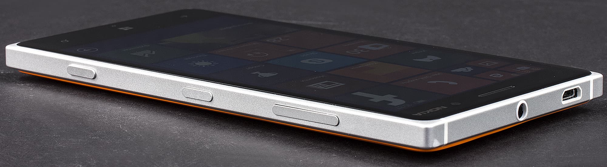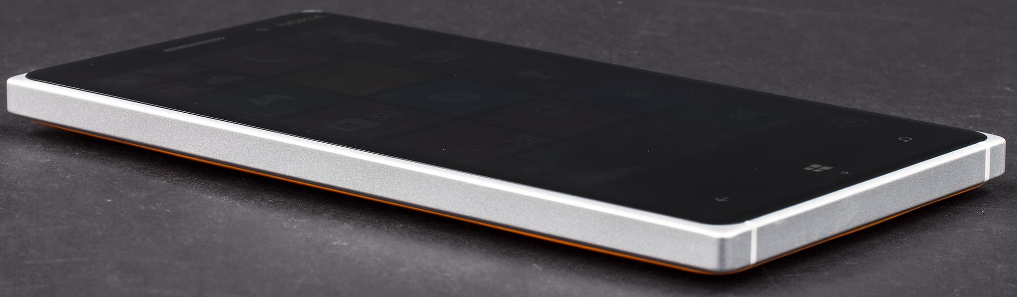 Экран у Nokia Lumia 830 формально немного темнее (яркость по фотографиям 105 против 106 у Nexus 7), но разница точно укладывается в пределы погрешности для данного теста. Утроение отраженных объектов в экране Nokia Lumia 830 очень слабое, это свидетельствует о том, что между внешним стеклом (оно же сенсор прикосновений) и поверхностью матрицы нет воздушного промежутка (экран типа OGS — One Glass Solution). За счет меньшего числа границ (типа стекло/воздух) с сильно различающимися коэффициентами преломления такие экраны лучше смотрятся при сильной внешней засветке, но вот их ремонт в случае потрескавшегося внешнего стекла обходится гораздо дороже, так как менять приходится экран целиком. На внешней поверхности экрана есть специальное олеофобное (жироотталкивающее) покрытие (очень эффективное, пожалуй, лучше, чем у Nexus 7), поэтому следы от пальцев удаляются существенно легче, а появляются с меньшей скоростью, чем в случае обычного стекла.