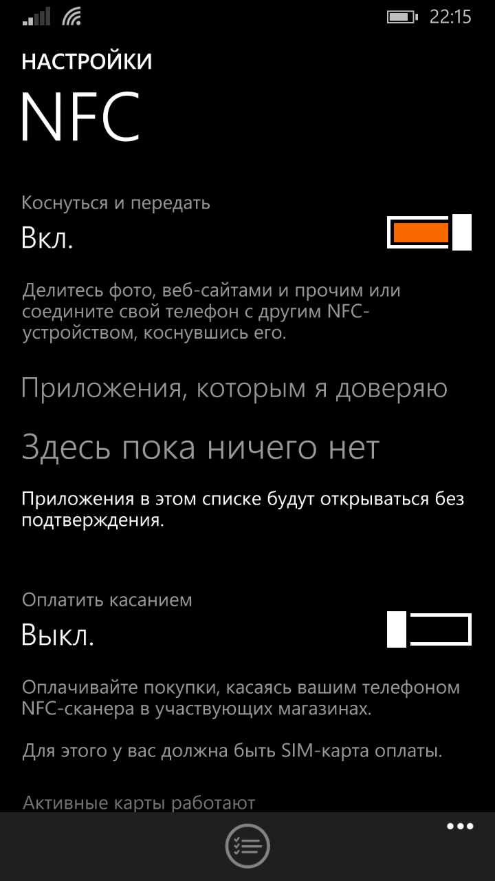 NFC в Nokia Lumia 830 используется для нескольких вещей. Во-первых, для считывания меток, во-вторых, для обмена данными между устройствами, в-третьих, для бесконтактных платежей. В качестве аксессуара компания Nokia, например, предлагает телевизионную приставку HD-10, которая передает видеопоток на HD-телевизор посредством NFC. Или метки Treasure Tag, которые, будучи связаны со смартфоном по NFC, а затем по Bluetooth, проинформируют его, если расстояние между устройствами значительно увеличится; на карте в это время будет отображаться положение метки.