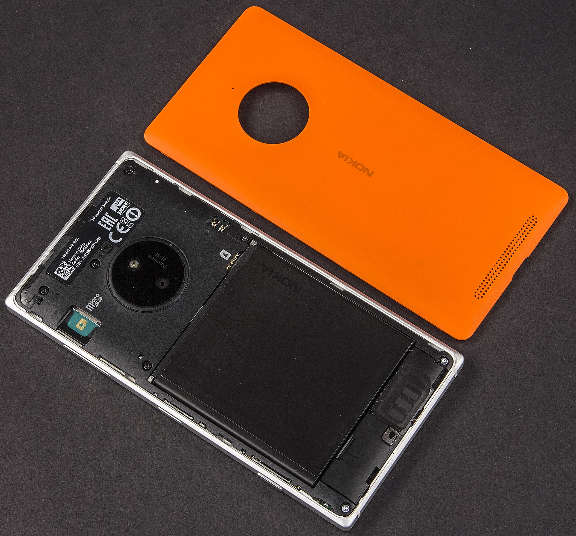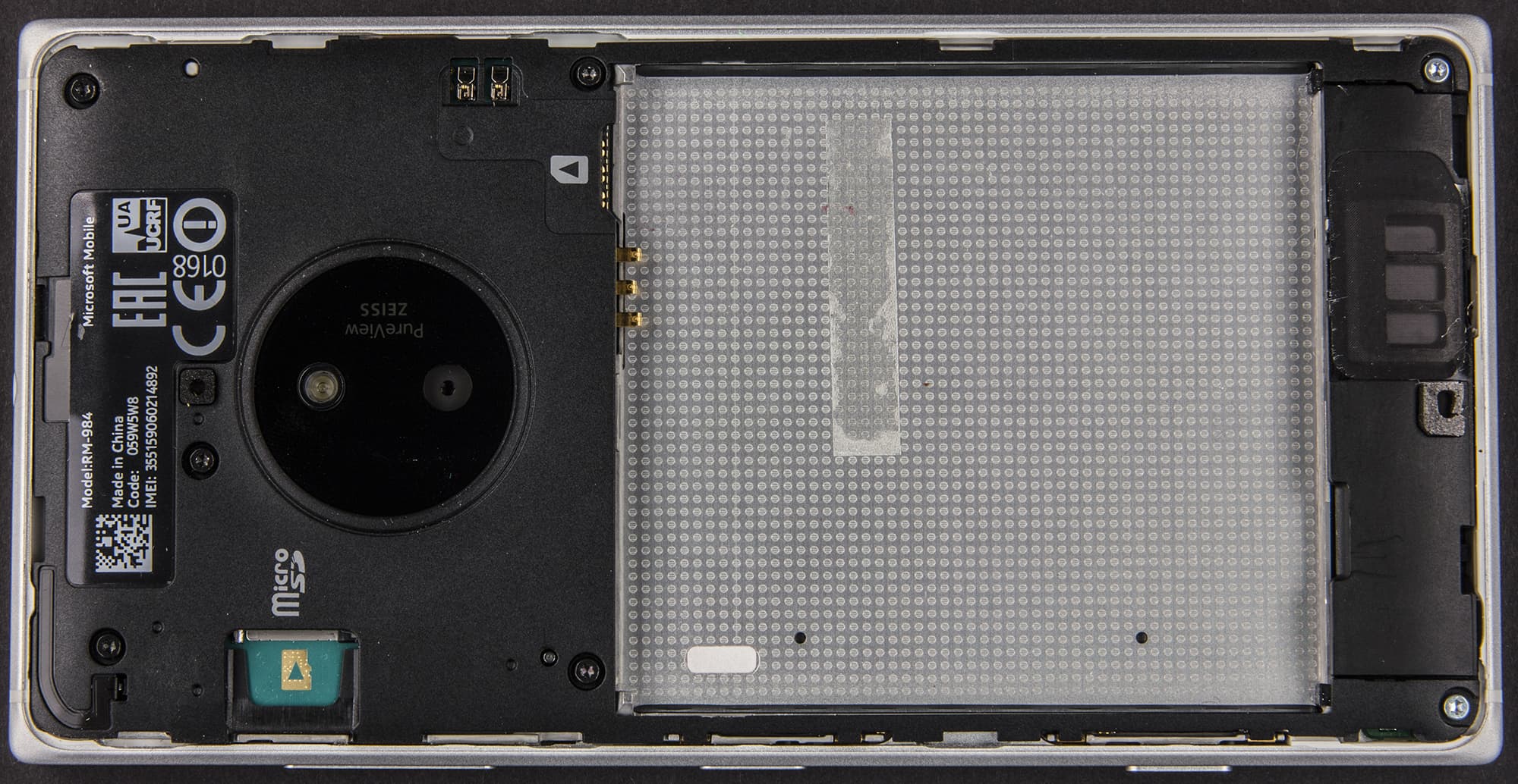 Интересно, что на внутреннем корпусе Nokia Lumia 830 присутствует маркировка с новым названием производителя — Microsoft Mobile.