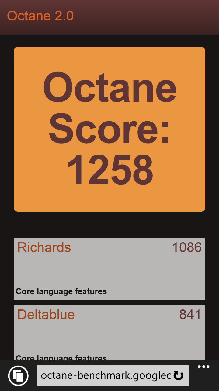 Тесты производительности JavaScript, за исключением SunSpider, в третий раз подтверждают наши выводы о месте смартфона в линейке Nokia Lumia.