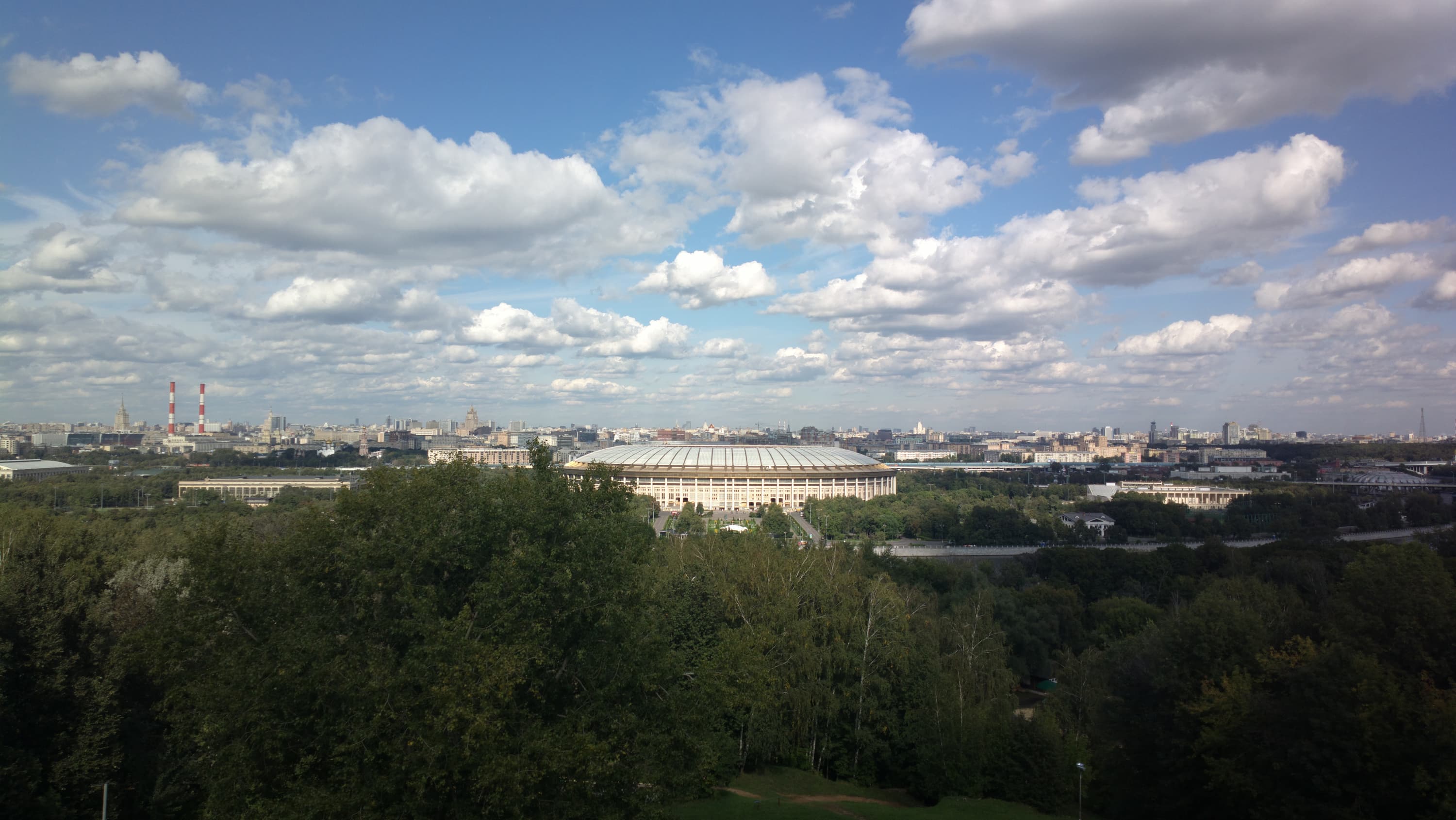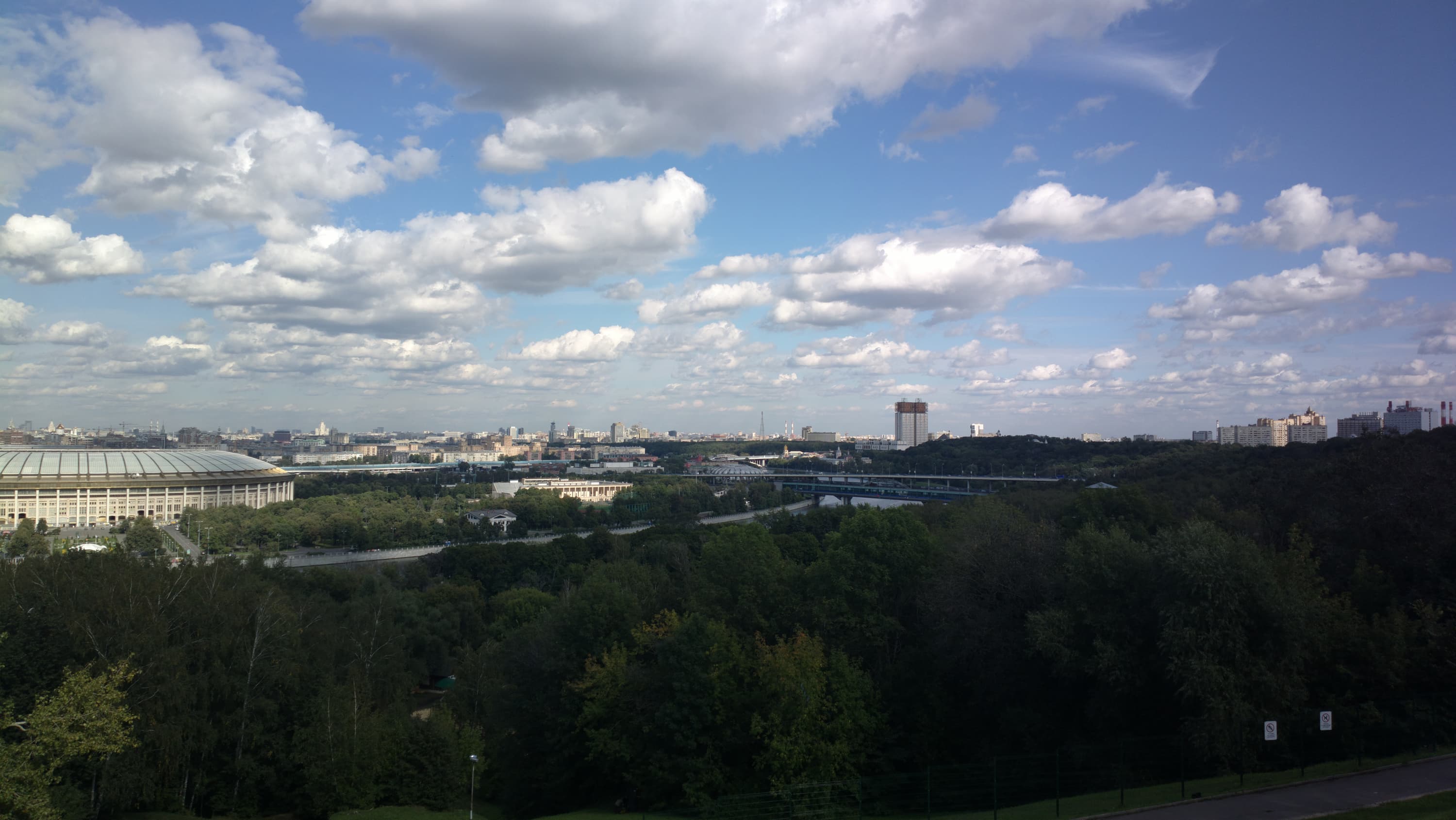 Довольно неожиданное поведение камер: Canon погнался за расширением динамического диапазона, делая общий экспозамер, и «потерял» голубой цвет неба; iPhone сохранил цвет неба, но потерял цвет леса. Nokia же удалось сохранить баланс и предоставить очень приятный снимок.