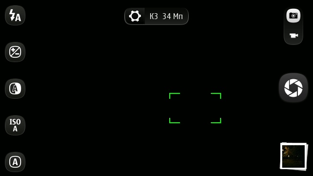 Далее, режим сенсора. Можно снимать в режиме полного разрешения, то есть 34 Мп, либо в режиме PureView, с разрешением 2, 5 или 8 мегапикселей. Затем идут стандартные настройки формата и качества, эффекты и режимы спуска затвора.