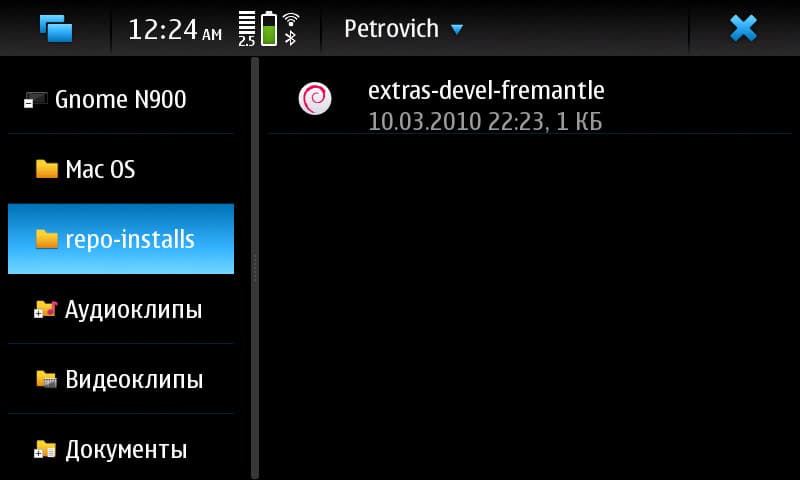 Отлично, теперь у нашего N900 есть ещё одна полезная, но «из коробки» не представленная функция. Беда «Петровича» — видит он только пользовательский раздел. А жаль, приходится подключать к работе сторонние менеджеры файлов.