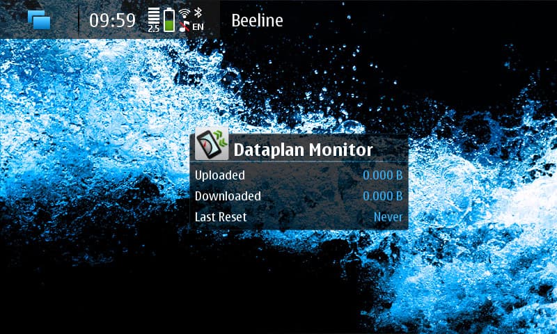В общем, журнала, в котором отслеживались бы GPRS-сессии, в N900 нет. Собственно, тут вообще с «Журналом», мягко говоря, беда, но об этом чуть позже. Что же до GPRS — единственное, что сейчас есть и может хоть как-то помочь, это виджет для рабочего стола, который называется «Personal Dataplan Monitor», умеющий вести подсчёт общего трафика, не разделяя его по типу. То есть, сколько вы накачали через МТС, а сколько через Beeline, будет для вас загадкой.
