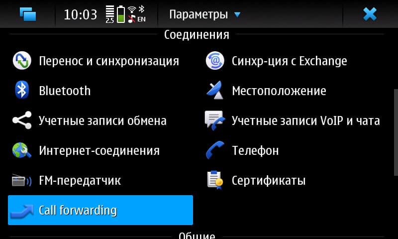 Ещё в основном обзоре N900 говорилось о том, что встроенная поддержка переадресации вызовов уж слишком примитивно устроена. Поэтому для нормальной работы телефона потребуется сторонняя разработка — «Call Forwarding Applet». Сейчас он располагается в Extras-Testing, есть и в Devel; на данный момент там одинаковые версии, поэтому без разницы, откуда ставить.