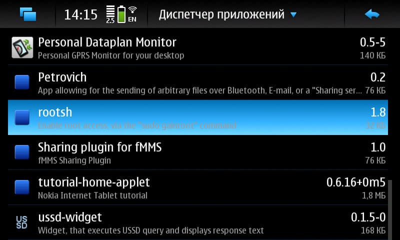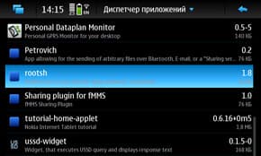 Раз уж заговорили о прогулках по файлам на N900, стоит, пожалуй, заняться и нашим правом там что-то изменять, а не заниматься простым созерцанием. Для этих целей существует пакет «rootsh», который нужно установить, после чего команда в терминале «sudo gainroot» будет давать вам соответствующие администраторские права. Ищем... ага, нету. Приглядимся повнимательнее: и точно, она уже установлена. Это сделала установка «fMMS», которая без «rootsh» работать не может. Вот и наглядная демонстрация одного из примеров того, зачем это нужно.