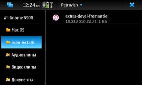 - Extras.install (Это качаем, только если у нас его нет. По-умолчанию он в N900 называется «maemo.org»)