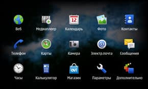 Меню в N900 — это нечто: всего две панели, в одной (главная) 14 приложений и кнопка для доступа во вторую панель, а в неё (дополнительная) сваливаются все остальные приложения, которые мы будем устанавливать. Ничего поменять местами и/или переименовать нельзя, папки свои создавать нельзя... В общем, здесь Nokia переплюнула всех, ухудшив даже ту ситуацию, которую пользователи получили «из коробки» в «сонериках» на платформе UIQ3. И непонятно, как OS linux и не-симбиановость, не-смартфонность (интернет-таблетность и так далее) могут оправдать отсутствие хоть сколько-нибудь продуманного меню. На скриншотах: слева главное меню, справа — то, что открывается по кнопке «Дополнительно».