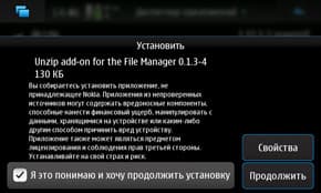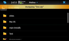 Установим для встроенного менеджера файлов поддержку ZIP. Это — «Unzip add-on for the File manager». Устанавливаем, проверяем: ага, работает. ZIP-ы открывает, RAR-ы, естественно, нет. Идём дальше.