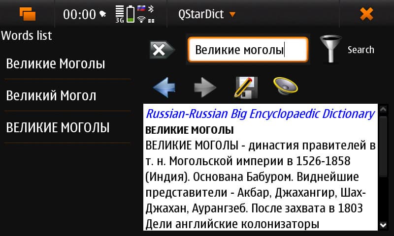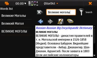 Словари. Встроенных нет, но есть весьма приличные сторонние, такие как QStarDict и MStarDict. Словарей (самих баз), в принципе, тоже довольно много, так что ту же «Большую Советскую», «Ушакова» или «Ожегова» вы сможете запросто заполучить в своём телефоне. Есть и очень неплохой онлайн-переводчик — gTranslate, работающий с гугловским сервисом.