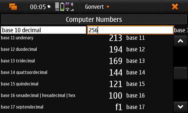 Конвертера встроенного нет, но есть сторонние, и весьма навороченные, как для конертирования валют, так и для различных единиц. Причём последний (Gonvert), пожалуй, оказался одним из самых могучих на эту тему — из тех, что мне знакомы в мобильных устройствах.